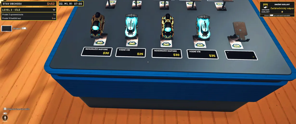 Základní myšlenka je roztomilá a jednoduchá: stanete se majitelem obchůdku s mini auty. Vaším úkolem je objednávat zboží, vybalovat krabice, plnit regály, nastavovat ceny a obsluhovat zákazníky. To vše v rámci uklidňující, cyklické smyčky, která vás pomalu, ale jistě vtáhne do svého rytmu. Hra však nejde cestou pouhého „přesouvání krabic“. Přidává do mixu silný prvek sběratelství a kreativity. Nejste jen prodavač, jste také nadšenec, který si v zadní místnosti může sestavovat a vylepšovat vlastní modely, ladit jejich výkon a vzhled, a pak je s pýchou vystavit na polici s vlastní cenovkou. Právě tato kombinace obchodního simulátoru a „garážového“ řemesla dává Mini Raceru jeho osobité