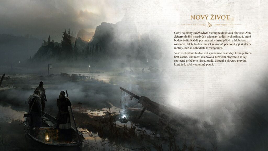 V Novém Edenu inspirovaného reálnými událostmi 90. Let 17. století Tě čeká plno mrazivých tajemství a děsivých případů, kterým musíš přijít na kloub, abys zachránil místní obyvatele. Místní lidé žijí, možná lépe řečeno přežívají, v komunitách uprostřed divoké přírody. Každá postava má vlastní příběh a hlubokou osobnost, takže je tvým cílem pochopit jejich motivy, než se odhodláš ke konečnému rozhodnutí. Každé rozhodnutí má mít významné následky a je potřeba je brát vážně.