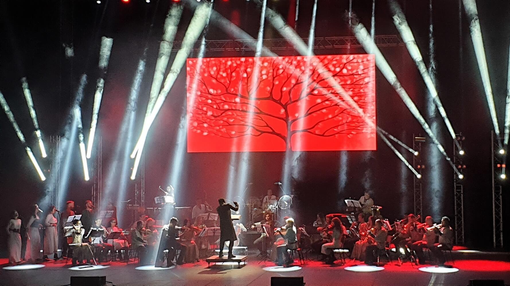 Já jsem šel na ten pozdější čas, se začátkem představení ve 21 hodin. Představení začalo poměrně přesně a jeho začátek jsem vám ve své video-reportáži i natočil. Koncert měl pod taktovkou Kyjevský dirigent pocházející z Teheránu Shahrokh Fathizadeh. Na pódiu vystupovala necelá čtyřicítka hudebníků: vlevo stály sólistky a vpravo dechové nástroje, ve předu smyčce, vzadu bubny a uprostřed k divákům zmíněný dirigent.