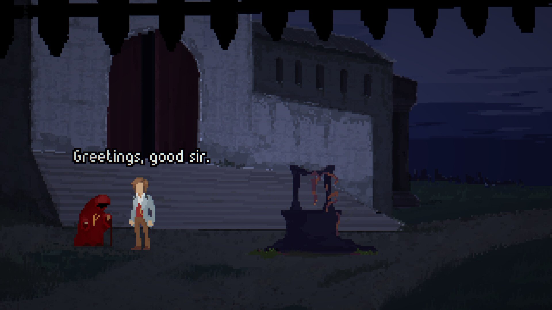Ještě se na chvíli vrátím k pixel-artu: přijde mi velmi povedený. Postavy nejsou extra detailní, ale lokace fungují perfektně a hutnou atmosféru vykreslují na jedničku. Možnou výtkou (krom absence dabingu) je menší počet lokací. U malé hry tohoto měřítka mi to ale přijde v pořádku — často vás totiž žene napříč scénami a během příběhu přidává několik nových. Dřív než se stihnou okoukat, je prakticky konec.