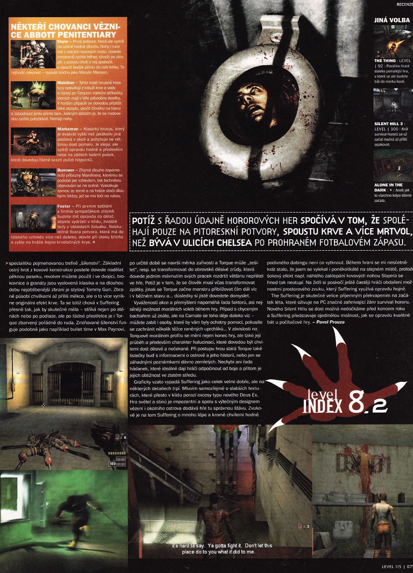 The Suffering byl mix psychologického hororu, svižné akce a lehounkých hádanek. Tento legendární akční survival horor vyšel v roce 2004, nabízel hráčům neobvykle často i možnosti volby, které ovlivňovali jak jeho průchod úrovněmi, tak i zakončení hry a tím ho povyšovali nad tehdejší mnohdy sterilní konkurenci. Pařane DEJ ODBĚR »»» http://bit.ly/ParanskyRajOdber Hra se dá pořídit z GOG pro moderní PC zde: https://www.gog.com/game/the_suffering Volit a doplňovat další hry do retra můžete na Facebooku v Hlasovací skupině Pařanského ráje: https://www.facebook.com/groups/560811490941668/ Tento seriál má i svoji skupinu na Facebooku, kde naleznete k vysílaným hrám fotokopie daných dobových recenzí z papírových herních časopisů: https://www.facebook.com/groups/strojcasu/ Pařanský Twitch kam teď streamuji hlavně Battle Royale hry a mixovanou realitu: https://www.twitch.tv/paranskyraj/ Pařanský partnerský herní obchod: https://www.playcentrum.cz – kód na 3% slevu u nákupu nad 500 Kč: „PARANSKY RAJ“ se zadává až do závěrečné poznámky, než se objednávka odešle. Cestovka za hubičku – levná dovolená se zájezdy do celého světa: https://www.cestovkazahubicku.cz/