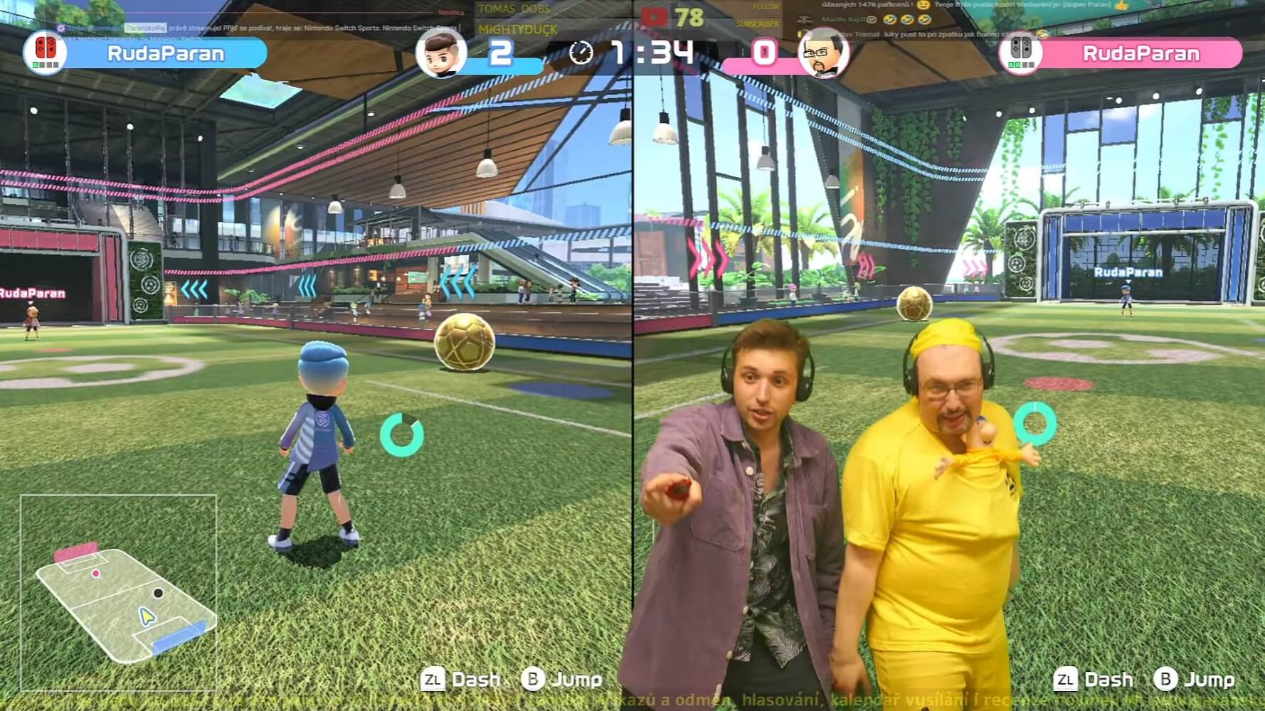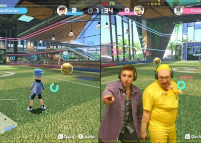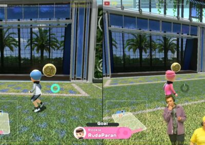 Fotbal je takový arkádovější a trochu připomíná známou hru Rocket League. Hrát ho lze jak čtyři na čtyři, tak i jeden na jednoho. Kop se dělá švihnutím ruky a páčkou se ovládá pohyb.