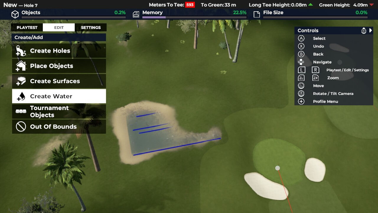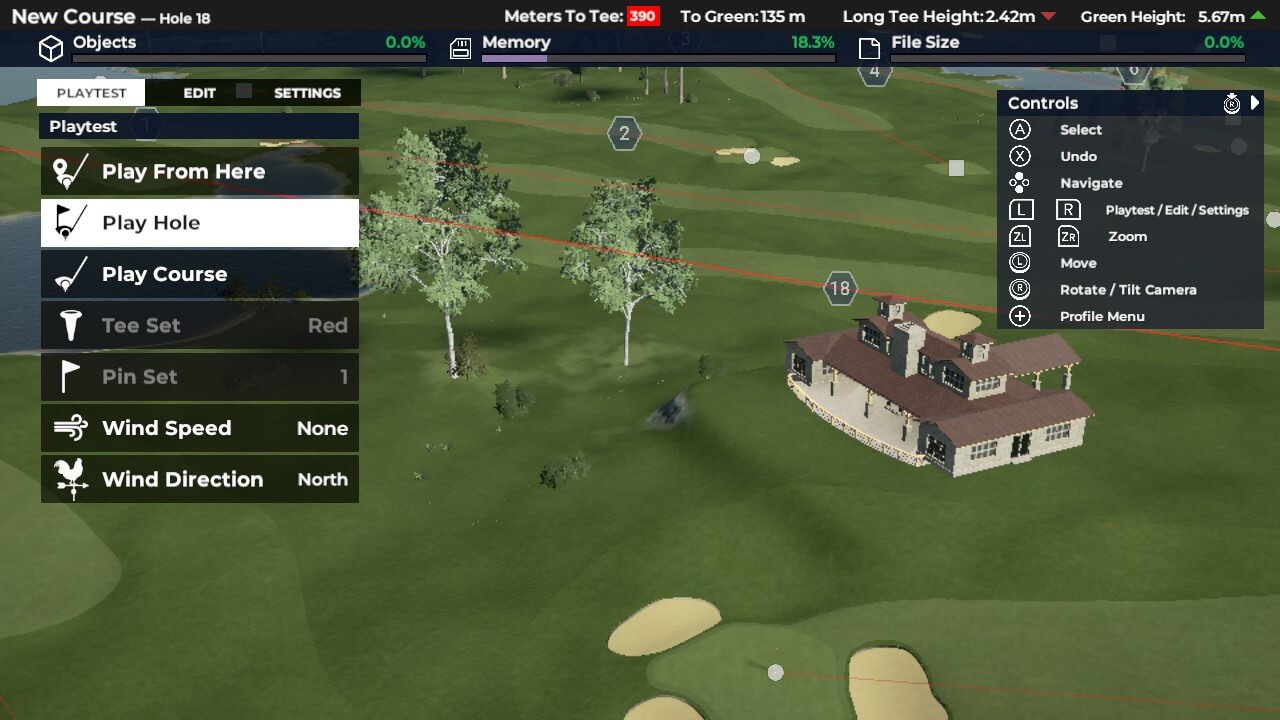 Hra je přehledně rozdělená do záložek. Dají se cvičit různé techniky, hrát běžný turnaj, celou kariéru proti profi hráčům či vytvářet vlastní golfové hřiště. Je možné využít i hry pro více hráčů. PGA podporuje jak local play, tak online. Nastavit se dají všemožná pravidla, handicapy, počasí a typy vítězství, včetně 2v2 turnajů. Je možné se zapojit do tzv. Society ligy či si vytvořit svoji dle vlastních pravidel. Zahrnuje celou sezónu golfových turnajů, které se může kdokoliv zúčastnit. V rámci kampaně čeká 15 reálných hřišť, všechny jen z americké půdy. A pokud máš fantazii na vytváření vlastního hřiště, stačí zadat základní parametry (poušť či radši tropy, kolik vody, převýšení, trávy, počet jamek atd.) a hra vygeneruje vše sama. Následné úpravy jsou na tobě. Přidat lavičky, písek, sem tam krokodýla k vodě, nějakou tu palmu, zvětšit green atd. Je toho hodně, co se dá modifikovat, ovšem nevím, zda to má smysl. Switch verze má velké nedostatky. Každé přidání či úprava probíhá neskutečně pomalu. Takže po pár klikách jsem ztratila nervy a designér raději vypnula.