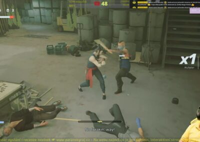 U čeho mi tedy opravdu spadla čelist je samotná animace a likvidace nepřátel. Animace jsou extrémně plynulé, působí velice věrohodně a syrově, zkrátka je na co se koukat. Dorážení nepřátel hojně a s grácií využívá prostředí, takže jednou protivníka propasíruješ skrze zábradlí, podruhé ho zmastíš o barový pult a tak dále. Tady by se lecjaké studio mohlo učit, jak mají správně vypadat animace a také kolik se jich dá vymyslet v rámci okolního prostředí.