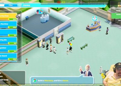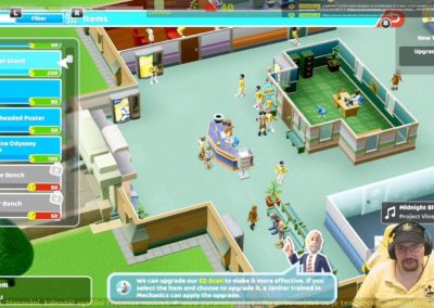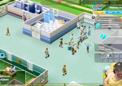 Jak postupuješ hrou, tak se nemocnice brzy naplní bzučivou energií. Před praktikem se udělá velká fronta pacientů, kteří čekají na diagnózu, protože lékař odešel na přestávku a hraje minigolf v odpočinkové místnosti – asi jsem tam opravdu ten minigolf dávat neměl. Pozitivní je, že z tohoto davu vyděláš pěkný balík, protože znudění pacienti v mezičase navštíví kafetérii, či jiné místo, kde nechají své peníze.